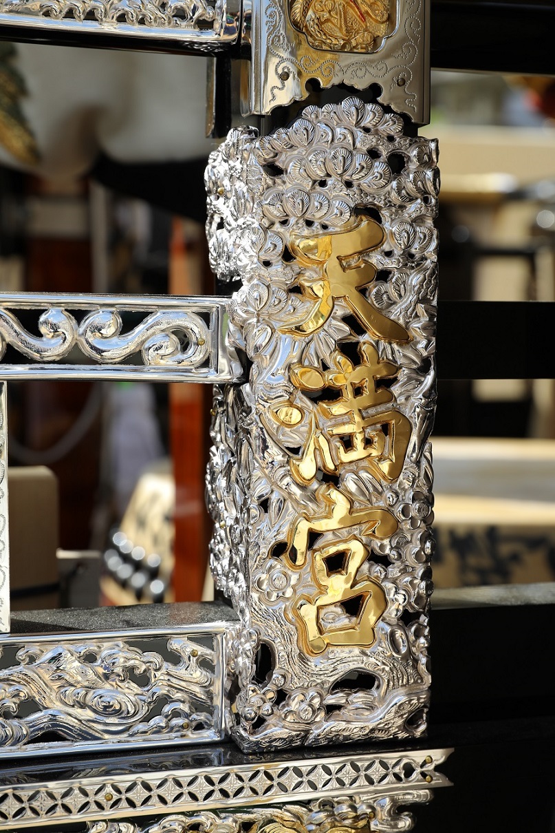 角柱金具:打ち出し透かし天満宮の文字松竹梅模様