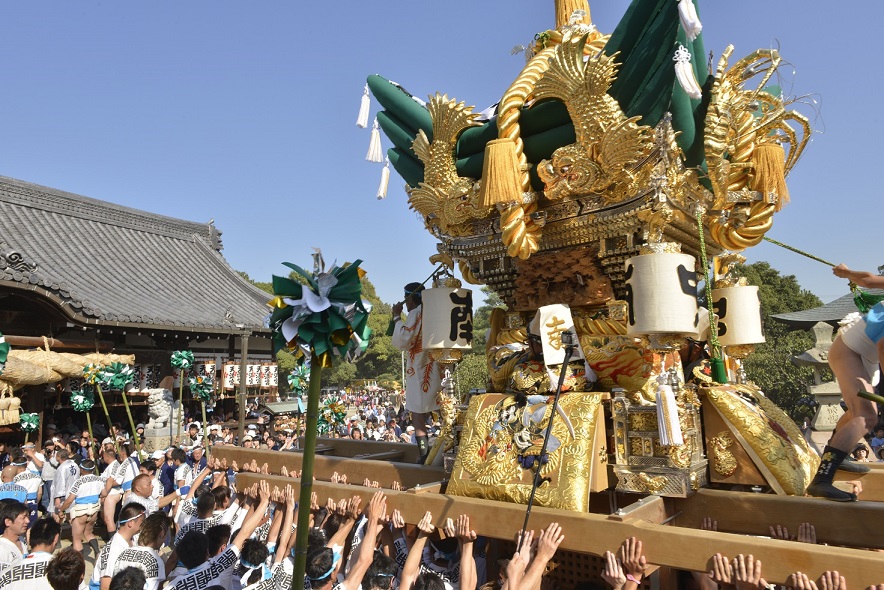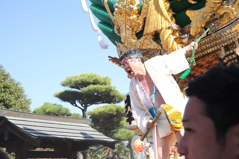 太鼓門通過後、練り歩き拝殿前への順番を待ちます