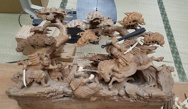 新調屋台(白木)に取り付けられた狭間