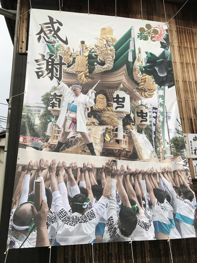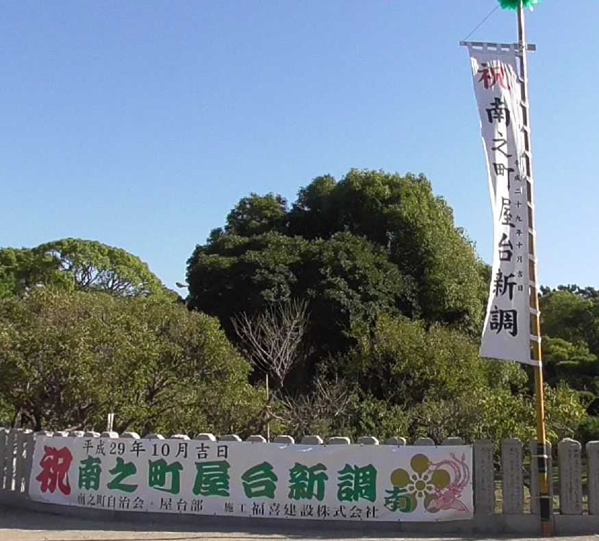 2017年11月6日 新調屋台“感謝”のタペストリーを屋台蔵にかけました!