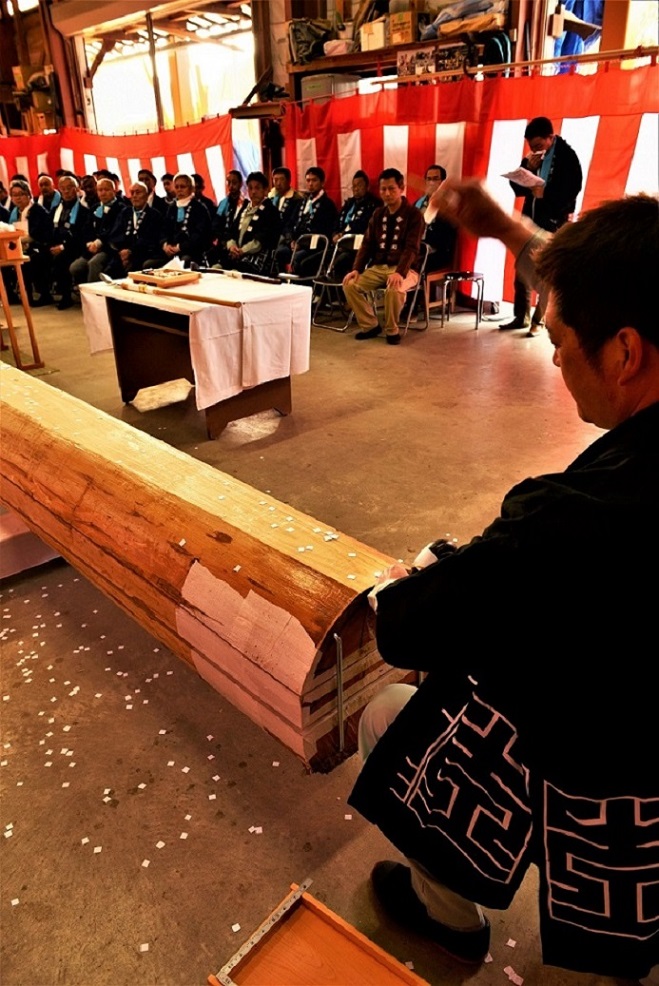 起工式は、滞りなく執り行うことが出来ました。いよいよ新調屋台の制作が始まります。