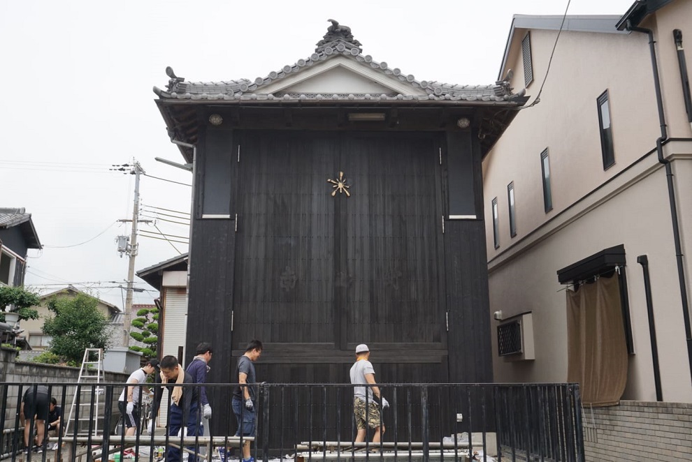 長年の雨、風で屋台蔵の焼き板が傷んでいました。 十八人衆・若頭が中心となり塗装を実施。